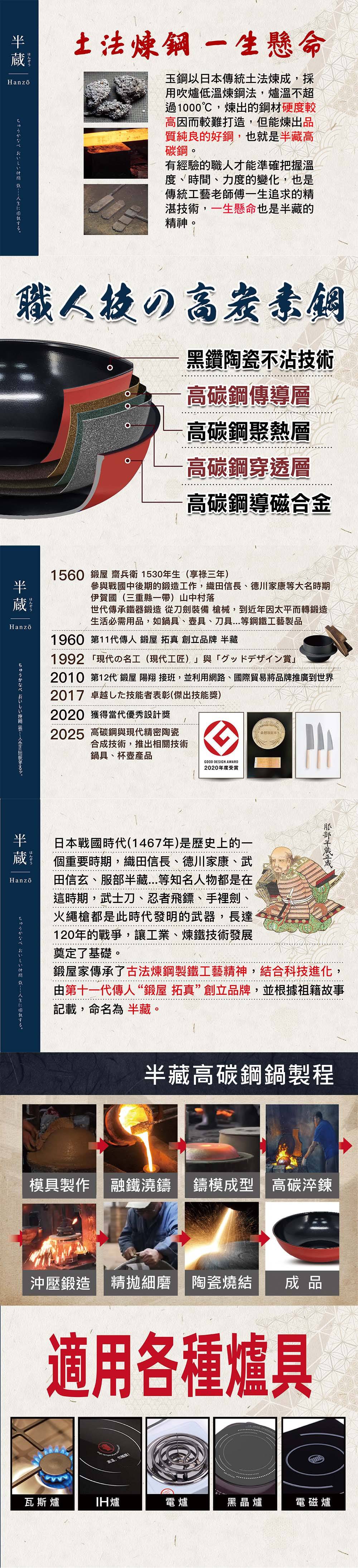 日本HAZNO半藏鐵器高碳鋼陶瓷不沾鍋