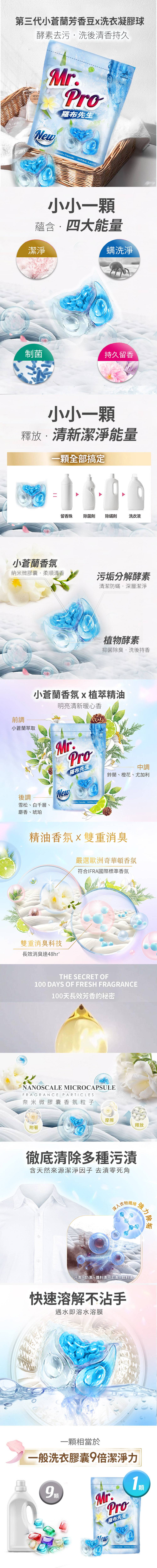 洗衣膠囊使用小蒼蘭植物香氛,除 臭抑菌配方,植物清潔酵素三效合 一,一次搞定