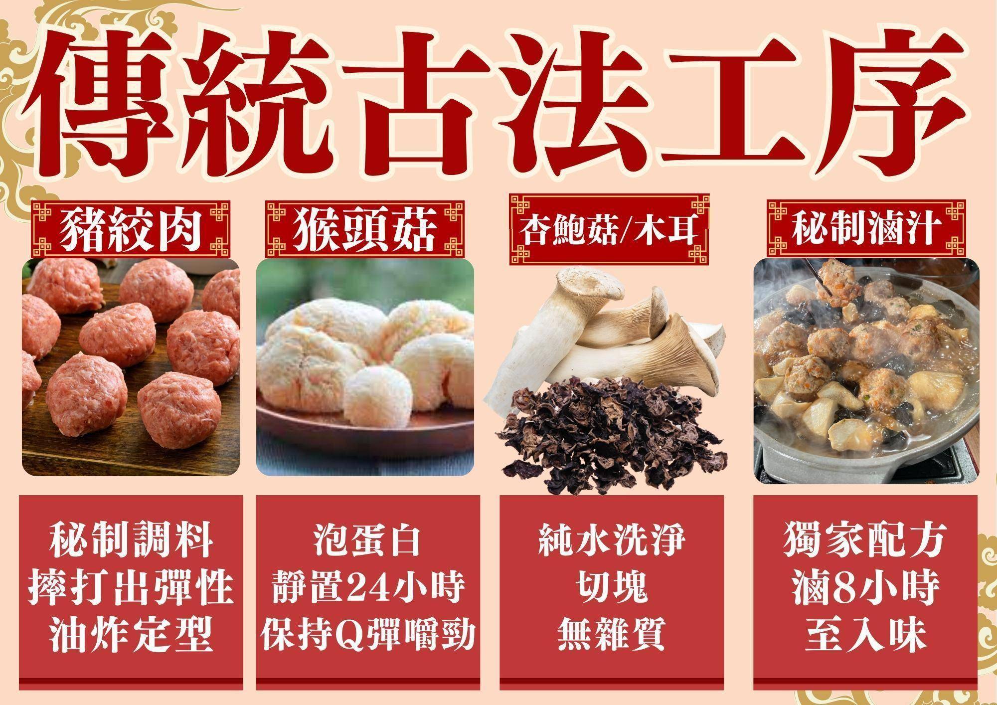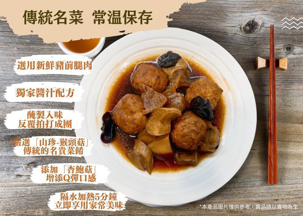 商品詳情 國宴主廚溫國智常溫獅子頭14包 常溫的杏鮑菇獅子頭有別於市售需要冷凍的獅子頭,使用獨家的配方獨家的常溫後殺設備,全程不添加防 腐劑,風味還有口感跟現做的一樣,而且杏鮑菇是少數蔬菜裡面後殺完口感不會改變,有著Q彈,而且爆 汁的口感,非常方便輕輕鬆鬆5分鐘就可以直接上菜 常溫獅子頭7包, 400g(固形物240g)/包,共5600g 國宴主廚溫國智常溫獅子頭14包(大組) TWD $2,600 TWD $2,600