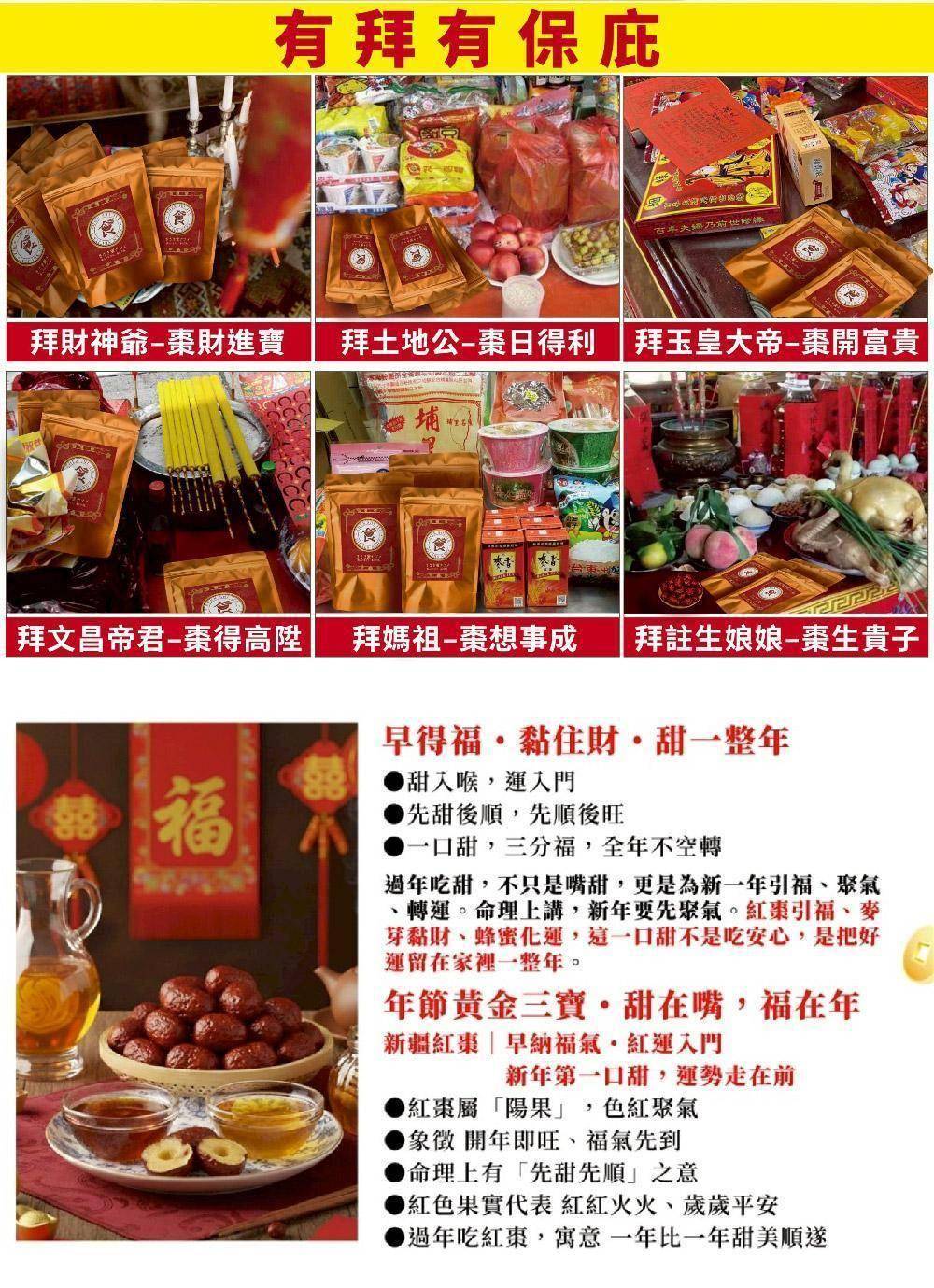 商品詳情 蓁食家宮廷點心新疆蜜紅棗搶購組-大組 貴妃蜜棗(120g/包)*20包單顆獨立包裝、乾淨衛生,方便又即刻享用 紅棗營養價值豐富維生素C含量超高 單包重量: 120g±3%(包) 成分:紅棗.白砂糖.麥芽糖.蜂蜜 食品添加物:己二烯酸鉀(防腐劑) 產地:中國 蓁食家宮廷點心新疆蜜紅棗搶購組-大組 TWD $1,800 TWD $1,800