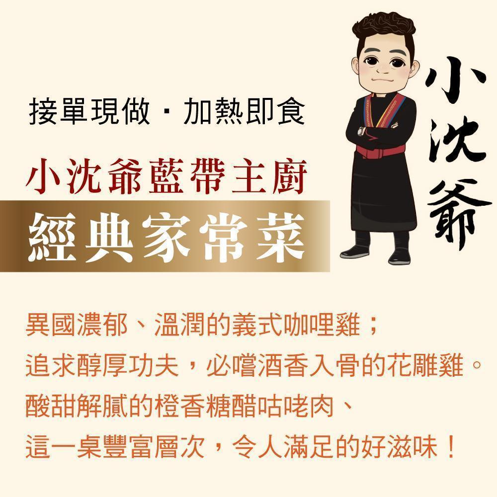 商品詳情 小沈爺藍帶主廚經典家常菜-三菜組-大組 義式咖喱雞200g/包*6包 花雕雞200g/包*6包 橙香糖醋咕咾肉200g/包*6包 小沈爺藍帶主廚經典家常菜-三菜組-大組 TWD $1,800 TWD $1,800